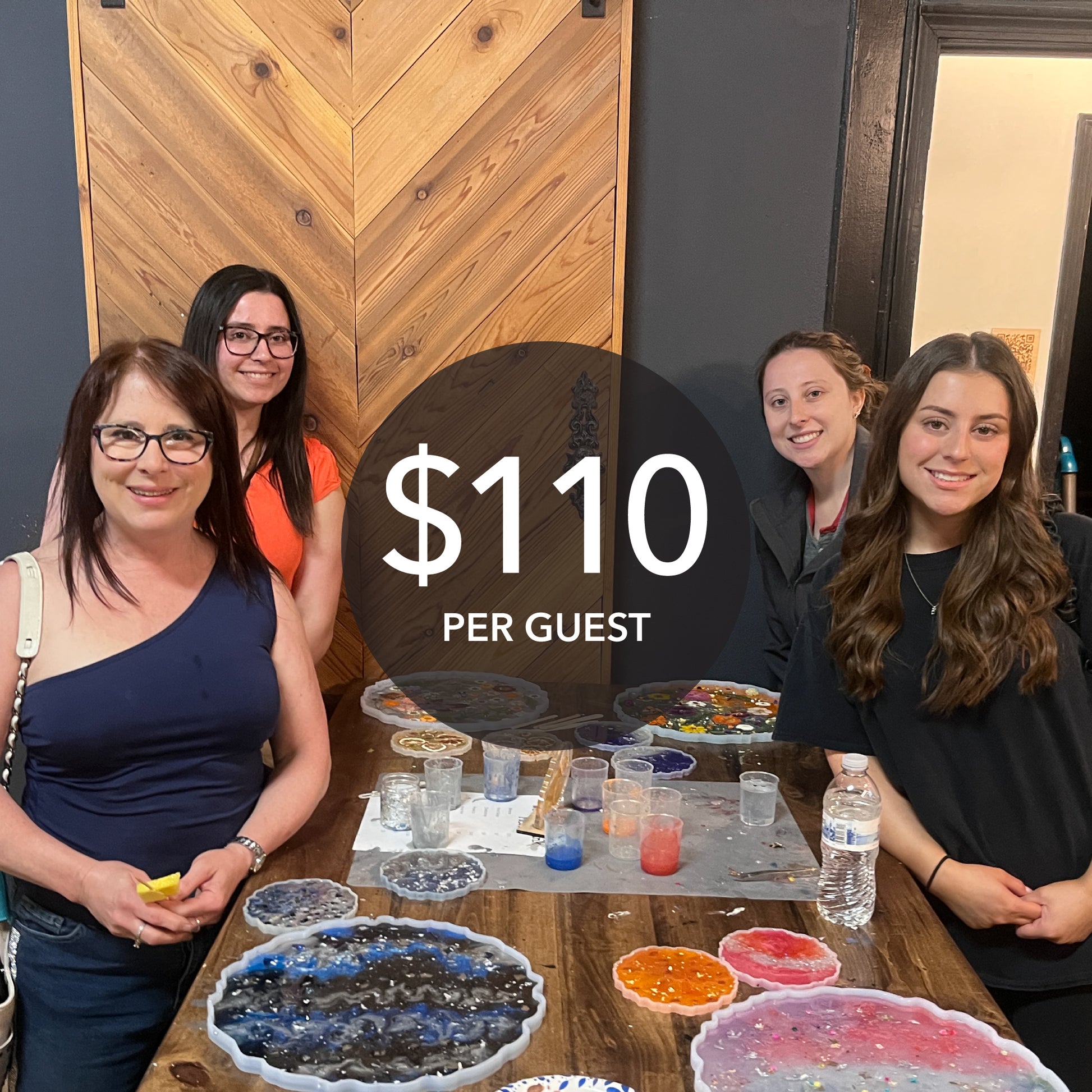 - Epoxy pouring projects for 6 guests (add guests for $110 each)