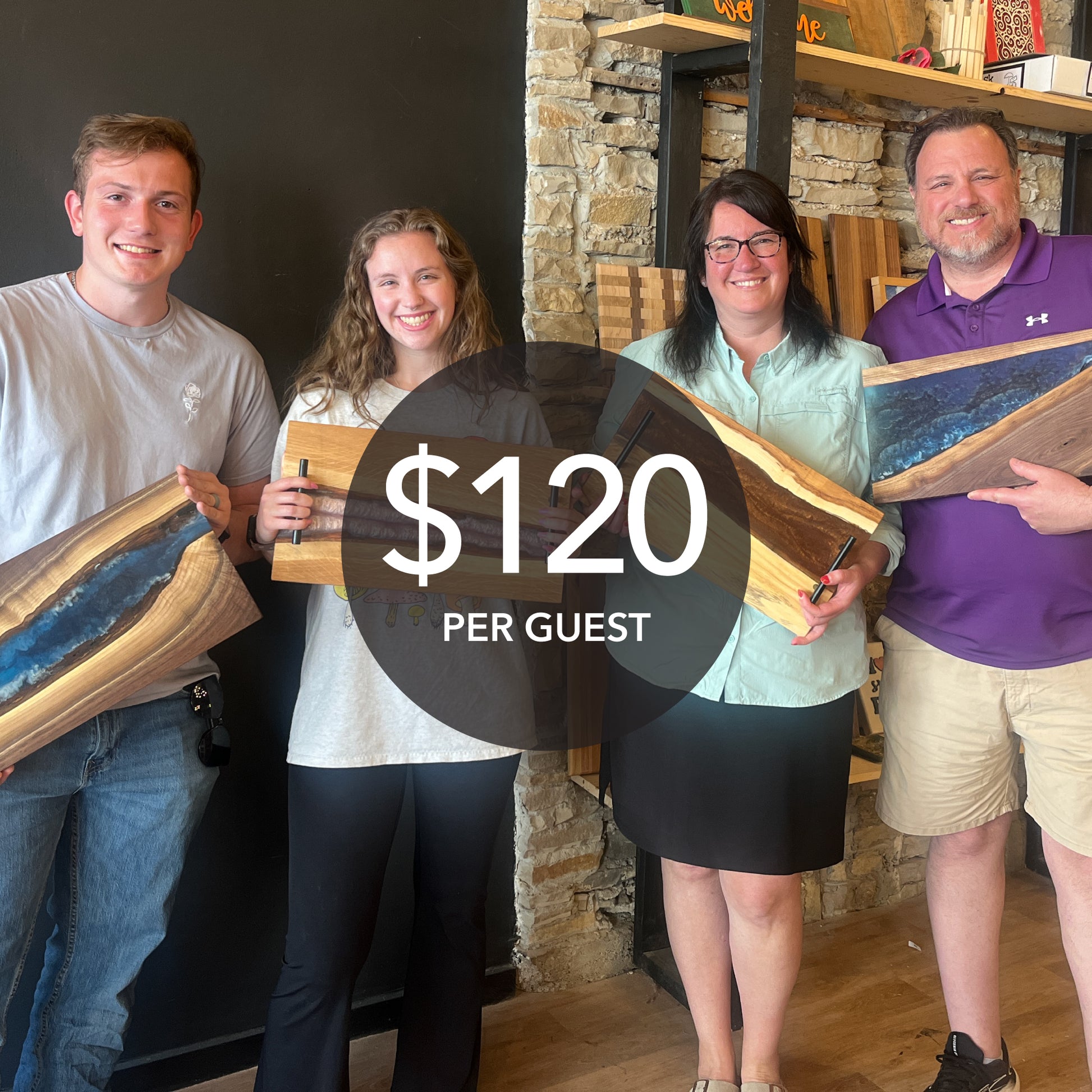 Elevate your next gathering with an Artisan Mixer party at Fisk Avenue DIY! Step into your own private studio and let your guests mix and match from a collection of impressive projects: craft a Glue-up Charcuterie Board, design a bold Wooden Barn Quilt, or create a stunning Epoxy River Serving Tray. No experience is necessary—our expert instructors will guide you through every step, ensuring your project turns out beautifully. All materials are included, so you can relax, mingle, and enjoy an unforgettable hands-on experience while making lasting memories. Your deposit covers 6 guests, but you can invite up to 20—just let us know your final count and payment a week before your event. Book your party and our Event Coordinator will reach out to help plan every detail. It’s the perfect way to celebrate, connect, and head home with a handcrafted masterpiece you’ll be proud to show off!