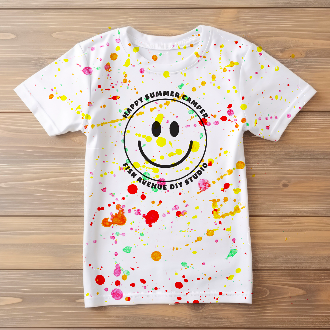 - Splatter Zone Camp T-shirt: Have a blast in our splatter room! Gear up, toss colors on your camp shirt, and make art you can wear to camp.