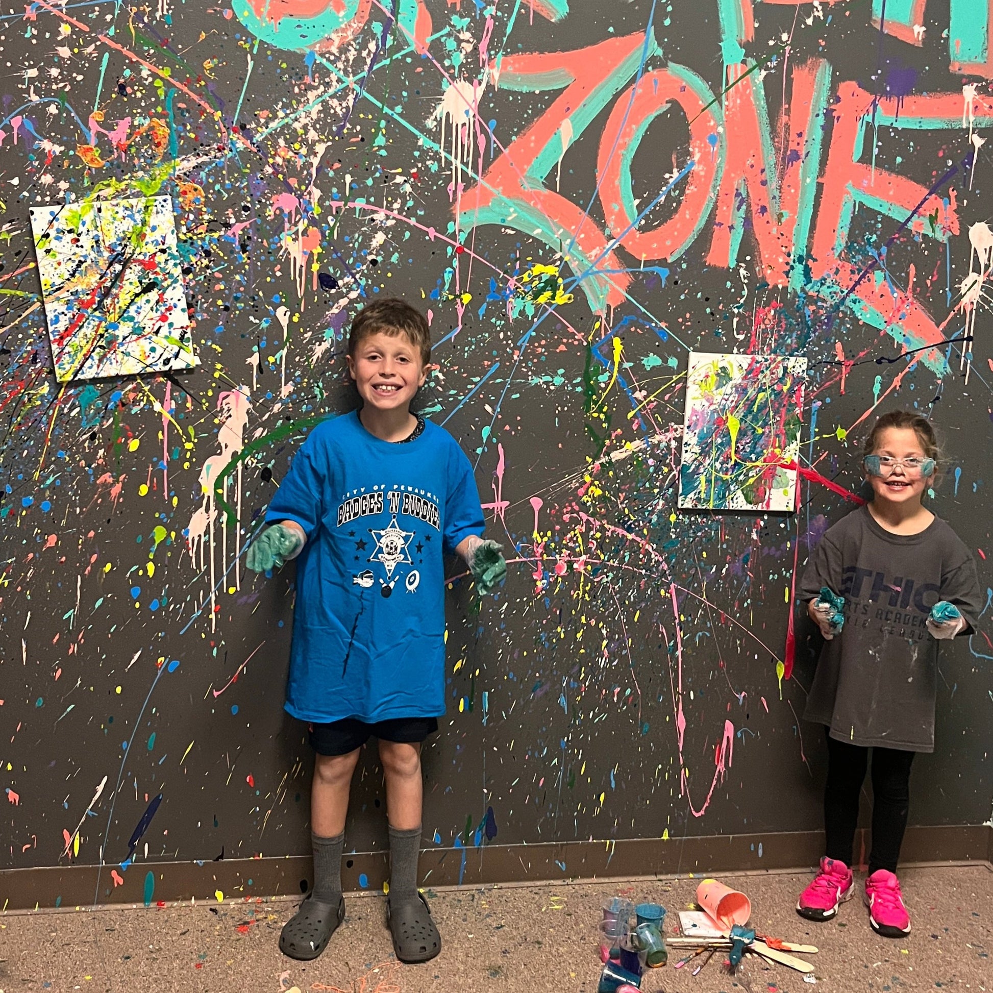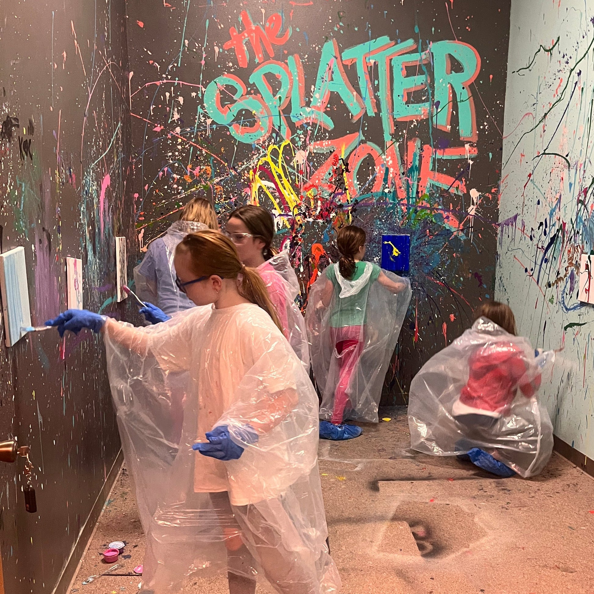 Make a creative mess without the clean-up at our exciting splatter booth! We'll provide a canvas and plenty of paint for your experience. You bring the energy and creativity to splatter a masterpiece! Wear your own painting shirt, or we offer gloves, booties, rain ponchos, and safety glasses to keep you clean - it's up to you! Adults can join in on the fun too! Fling paint for family time, a friend outing, a date, or team-building. Each ticket includes one hour of Splatter Zone time and a canvas size of your choice. Keep the splatter fun going and save by opting to add on a hat, bag, or extra canvas at a discounted rate. Purchase up to 6 tickets per time-slot to create with friends. Find your inner artist!